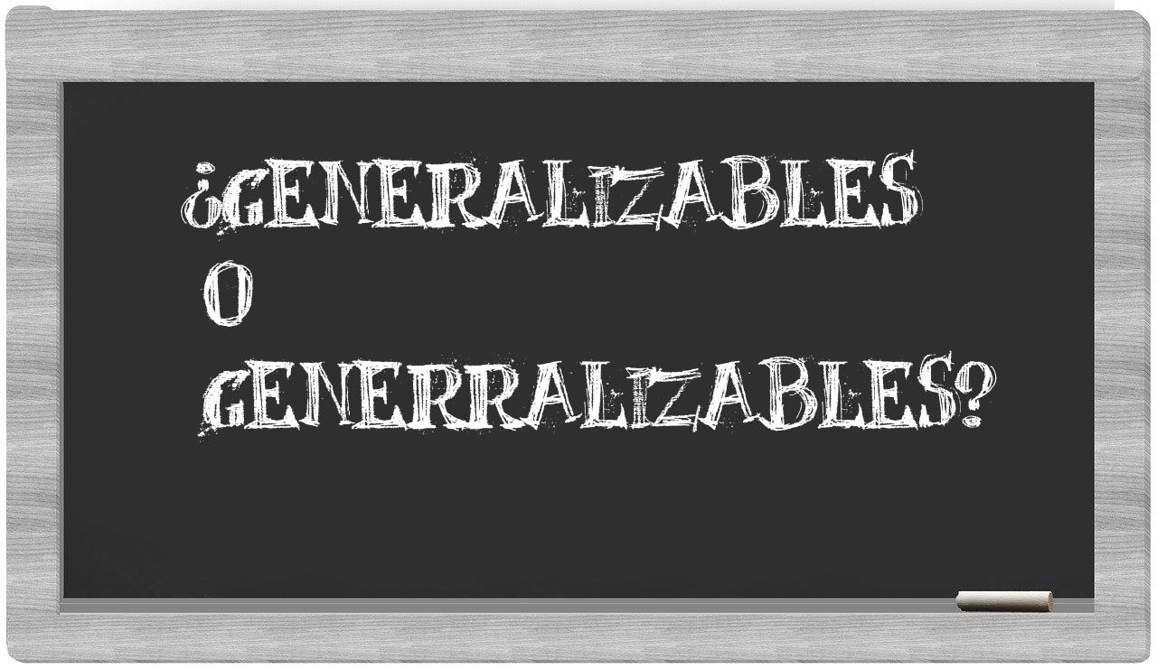 Ciertamente, en la situación específica que involucra los términos generalizables y generralizables, no deberías tener incertidumbres, puesto que únicamente generalizables es la forma adecuadamente redactada. Por otro lado, generralizables no se encuentra registrado en el Diccionario de la Real Academia Española.