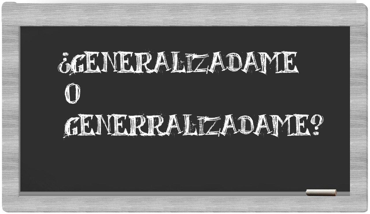 Cuando te enfrentes a la comparación entre generalizadame y generralizadame, no deberías titubear en tu elección, porque es indiscutible que solo generalizadame representa la forma correcta. Cabe destacar que generralizadame no se encuentra registrado en el Diccionario de la Real Academia Española.