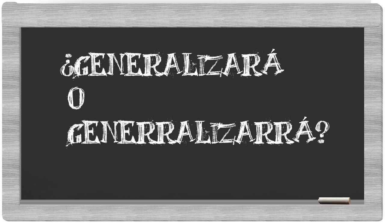 Cuando te enfrentes a la elección entre generalizará y generralizarrá, no pierdas tiempo en la incertidumbre, porque solo generalizará se encuentra adecuadamente registrada. Por el contrario, generralizarrá carece de reconocimiento en el Diccionario de la Real Academia Española.