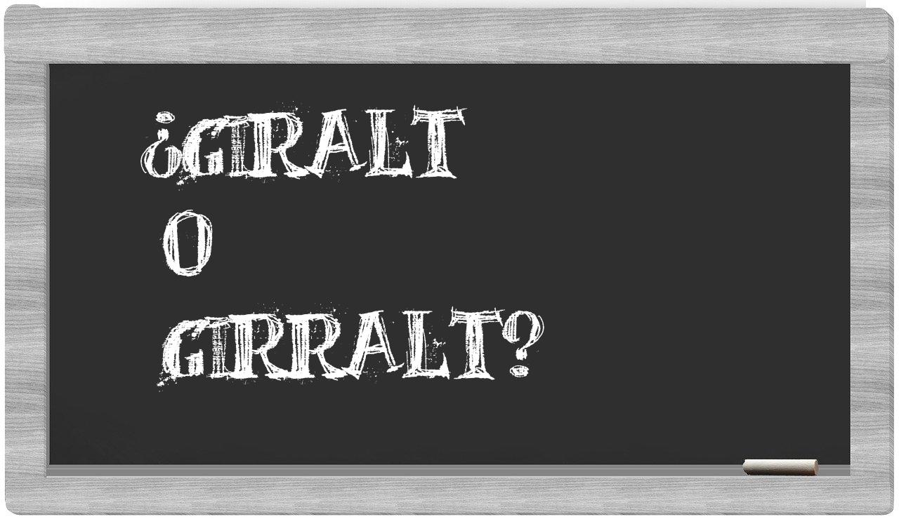 En la situación particular que enfrenta el término giralt en contraposición a girralt, la elección no debe generar incertidumbre, puesto que únicamente giralt se encuentra debidamente registrada como correcta. Por otro lado, girralt no figura en el listado del Diccionario de la Real Academia Española.