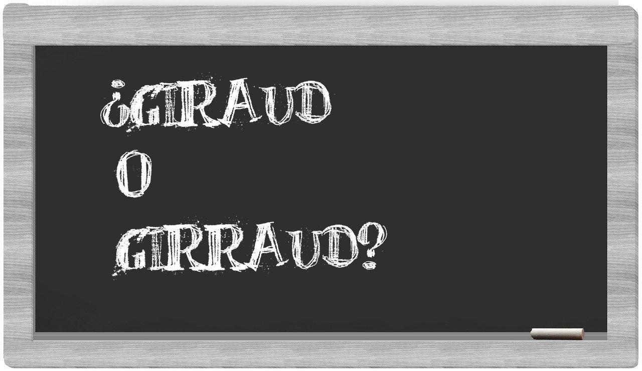 Cuando se presenta la distinción entre giraud y girraud, no debería haber lugar para la incertidumbre, puesto que únicamente giraud es la forma adecuada. Por otro lado, girraud no figura en el Diccionario de la Real Academia Española.