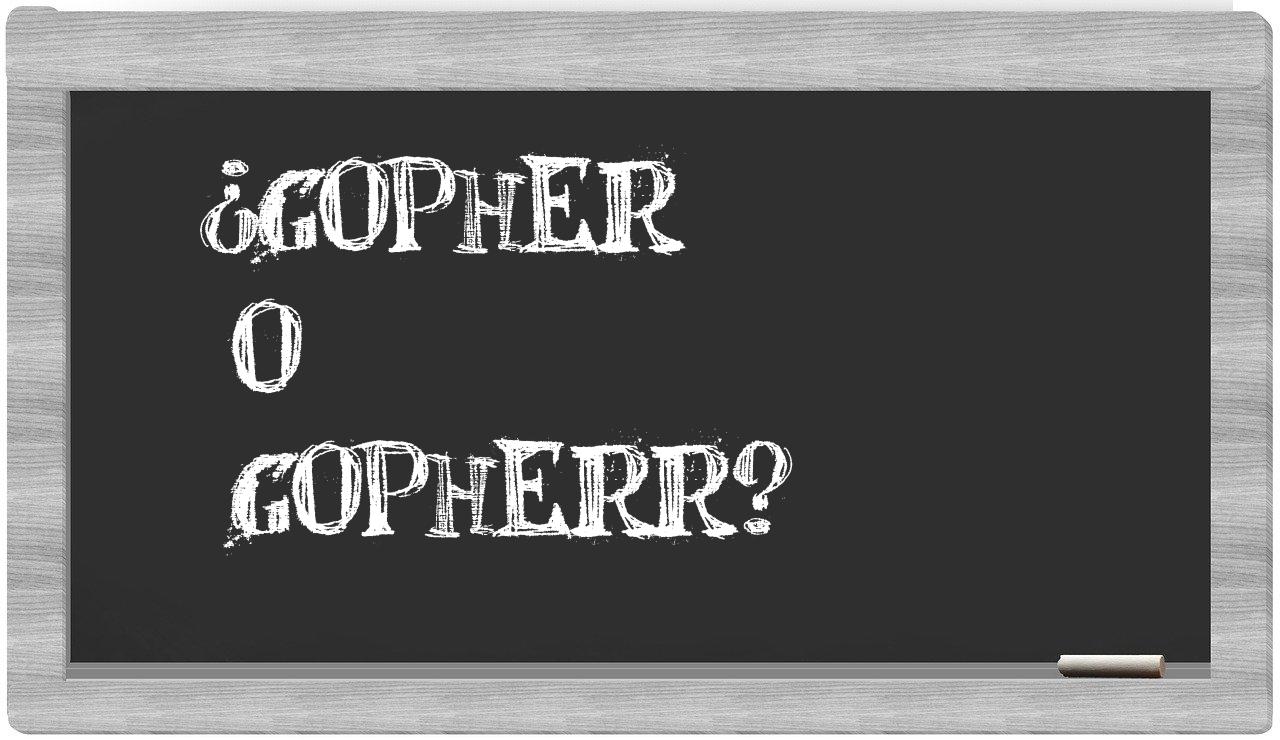 En la situación particular que concierne a las expresiones gopher y gopherr, no deberías titubear ni un instante, puesto que únicamente gopher se encuentra en su forma adecuada. Por otro lado, gopherr no figura en el prestigioso Diccionario de la Real Academia Española.