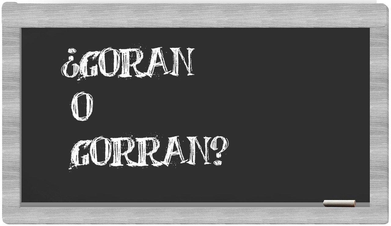 En la particular situación que involucra los términos goran y gorran, no debería existir ningún tipo de vacilación, puesto que únicamente goran se encuentra adecuadamente formada; en cambio, gorran no figura en el repertorio del Diccionario de la Real Academia Española.