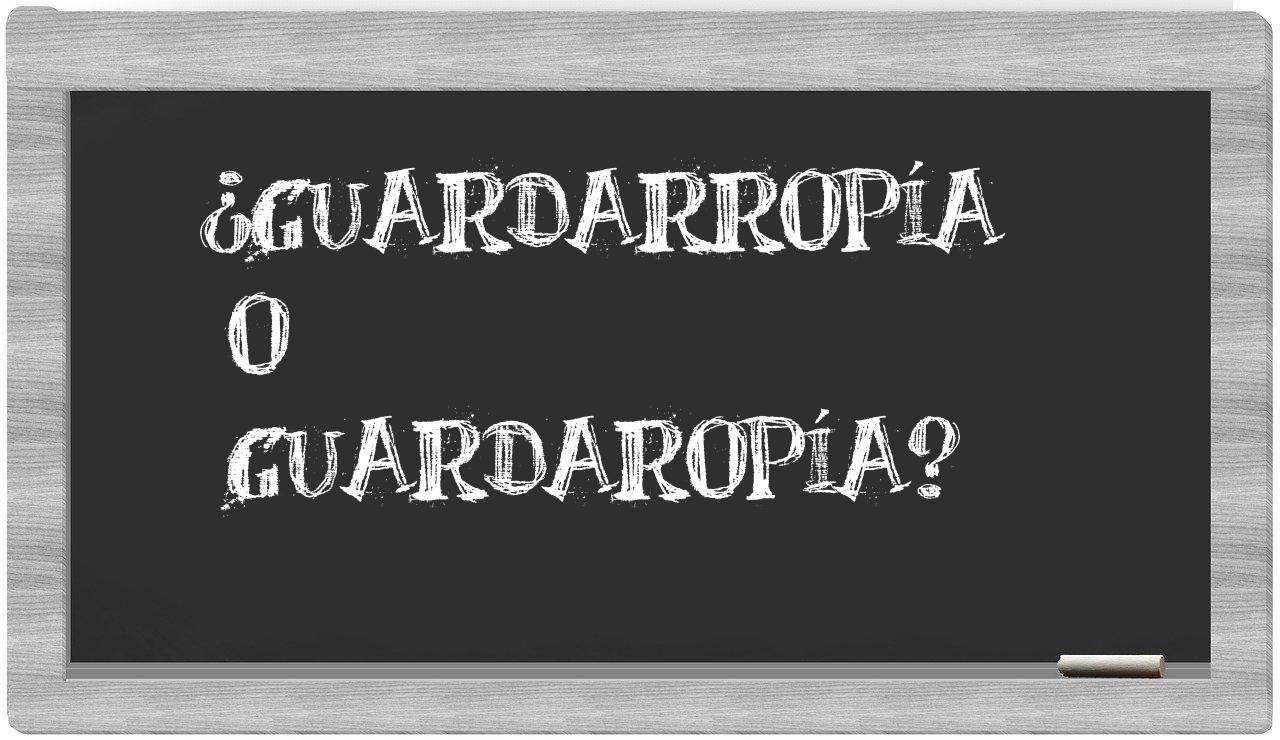Cuando se trata de las palabras guardarropía y guardaropía, no deberías titubear, puesto que únicamente guardarropía es la que se presenta correctamente, mientras que guardaropía no se encuentra registrada en el Diccionario de la Real Academia Española.