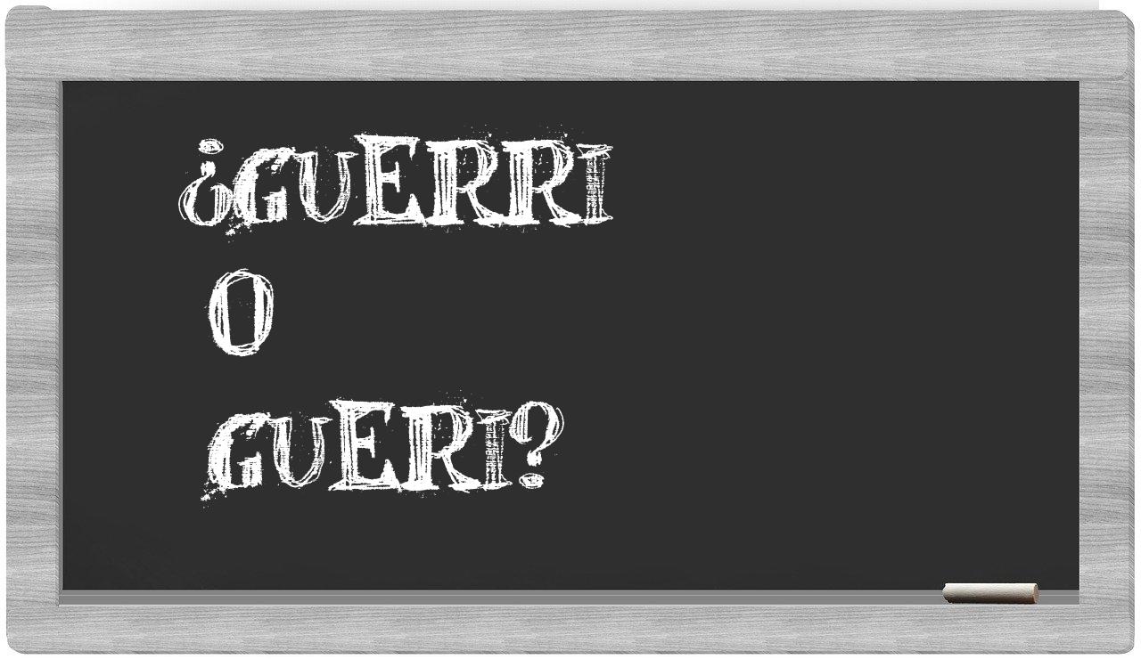 En la situación particular que involucra las palabras guerri y gueri, no debes titubear en absoluto, puesto que solamente guerri es la que se encuentra correctamente registrada. En cambio, gueri no figura en el Diccionario de la Real Academia Española.