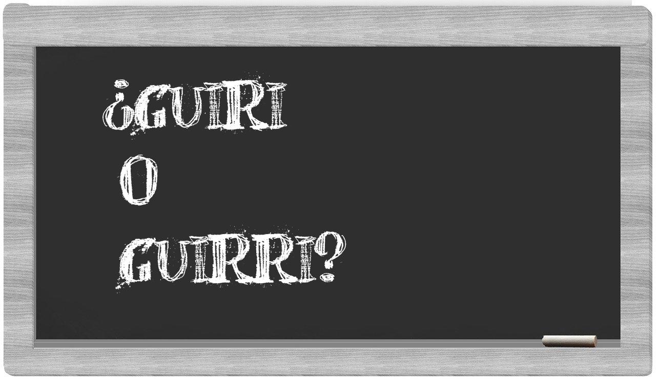 Cuando se trate de la elección entre guiri y guirri, no deberías titubear, pues únicamente guiri es la opción que figura correctamente en el Diccionario de la Real Academia Española, mientras que guirri carece de tal reconocimiento.