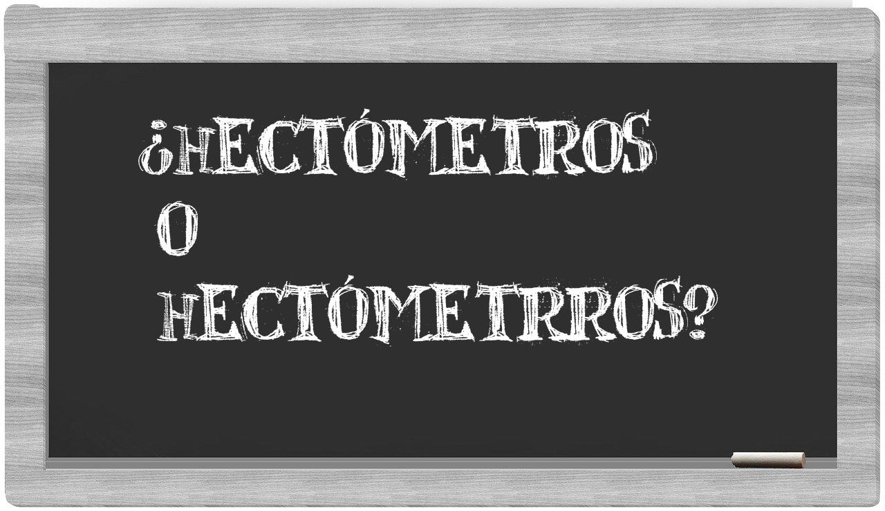 Cuando se trata de elegir entre hectómetros y hectómetrros, la elección es clara y sin vacilaciones, pues únicamente hectómetros está registrada de manera apropiada, mientras que hectómetrros no figura en el vocabulario oficial de la Real Academia Española.