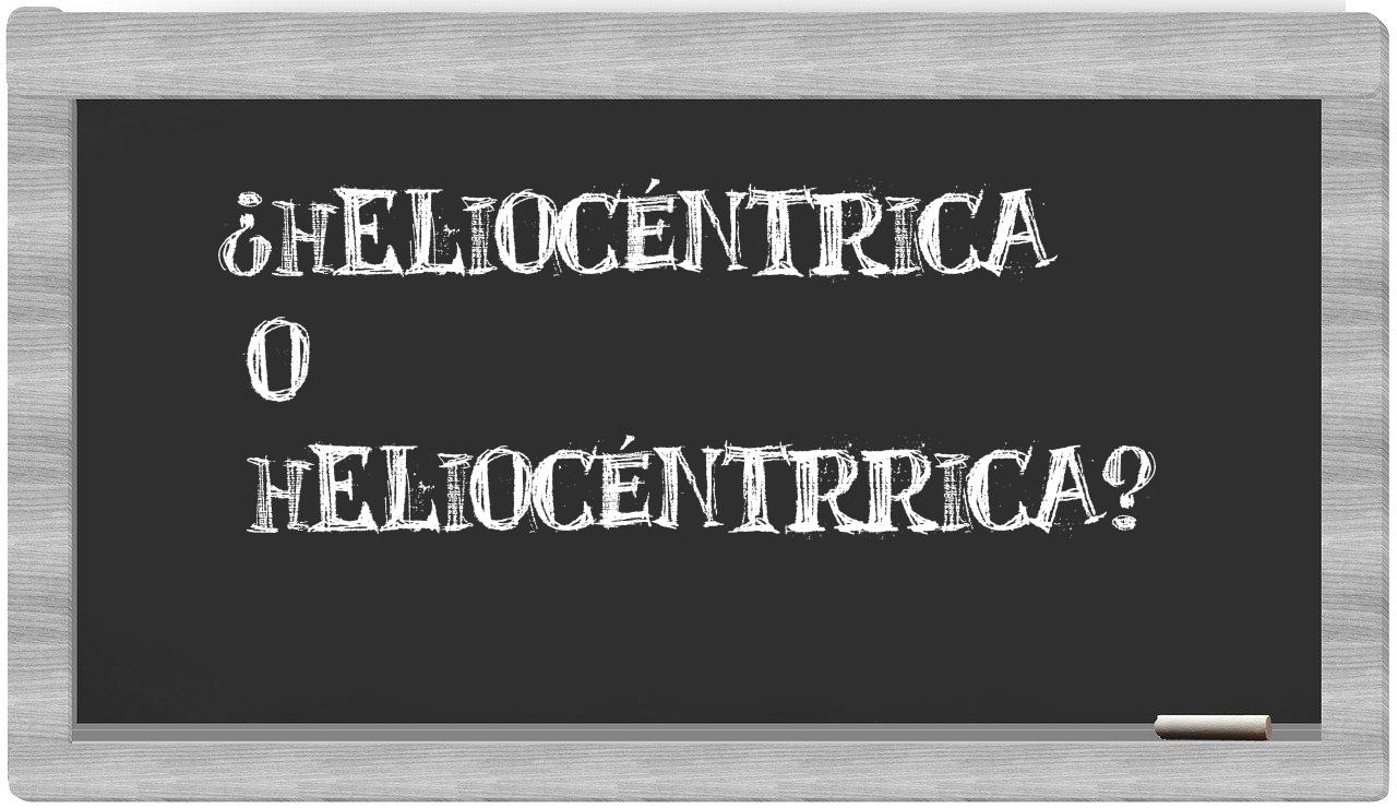 Cuando se trata de la distinción entre heliocéntrica y heliocéntrrica, no hay razón para titubear, puesto que únicamente heliocéntrica es la forma adecuada, mientras que heliocéntrrica carece de reconocimiento en el Diccionario de la Real Academia Española.