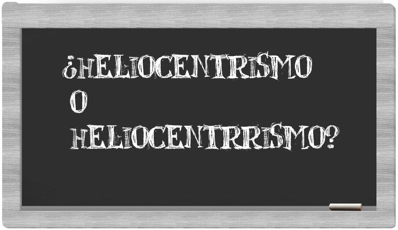 Cuando te enfrentes a la elección entre heliocentrismo y heliocentrrismo, no vaciles ni un instante, puesto que únicamente heliocentrismo es la forma adecuada. Recuerda que heliocentrrismo carece de reconocimiento en el Diccionario de la Real Academia Española.