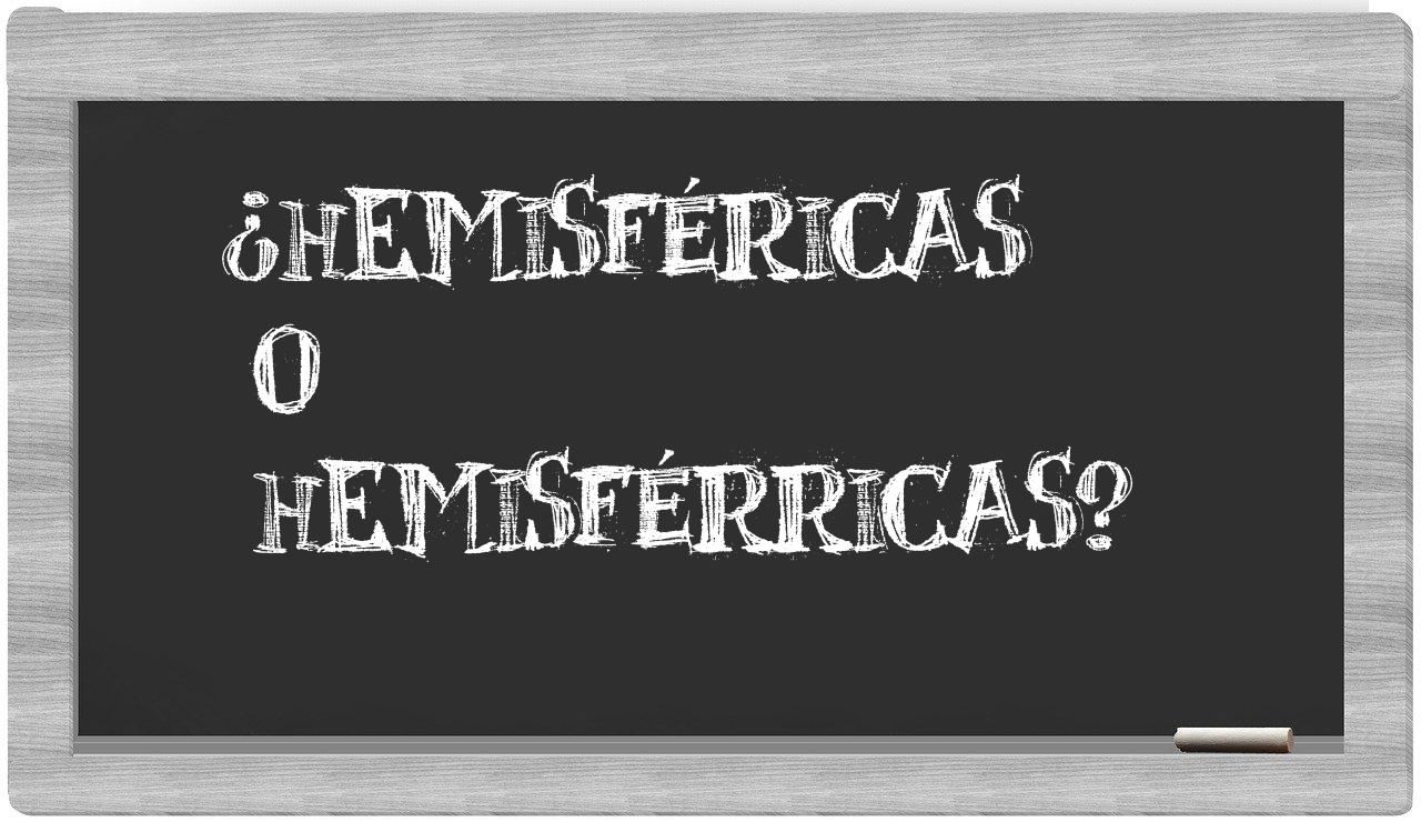 Cuando se trata de distinguir entre hemisféricas y hemisférricas, no deberías experimentar ninguna inseguridad, pues únicamente hemisféricas se encuentra registrada de manera adecuada. En cambio, hemisférricas no se halla en el Diccionario de la Real Academia Española.
