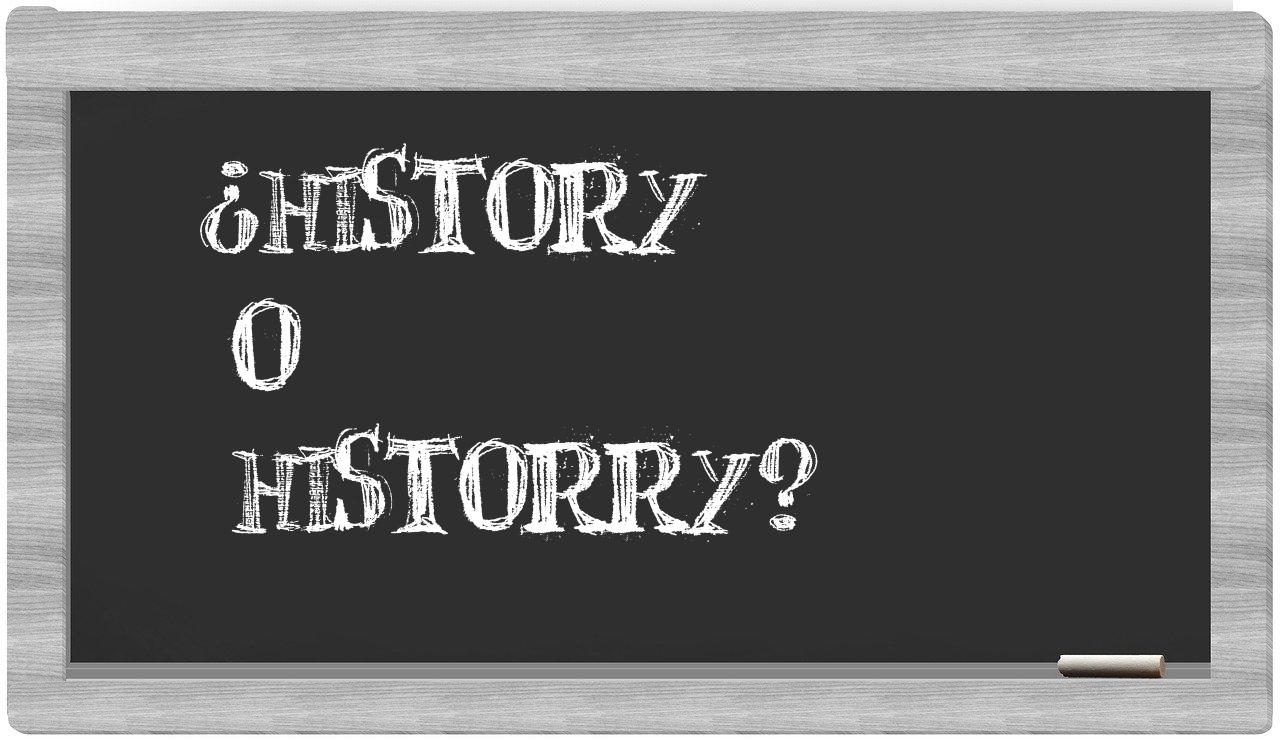 Cuando se trata de las palabras history y historry, no deberías titubear, puesto que únicamente history es la que se presenta correctamente, mientras que historry no se encuentra registrada en el Diccionario de la Real Academia Española.