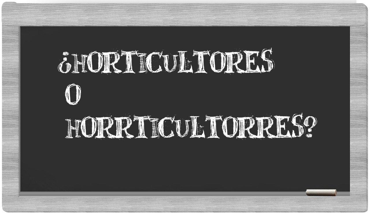 Cuando se trata de las palabras horticultores y horrticultorres, no deberías titubear, puesto que únicamente horticultores es la que se presenta correctamente, mientras que horrticultorres no se encuentra registrada en el Diccionario de la Real Academia Española.