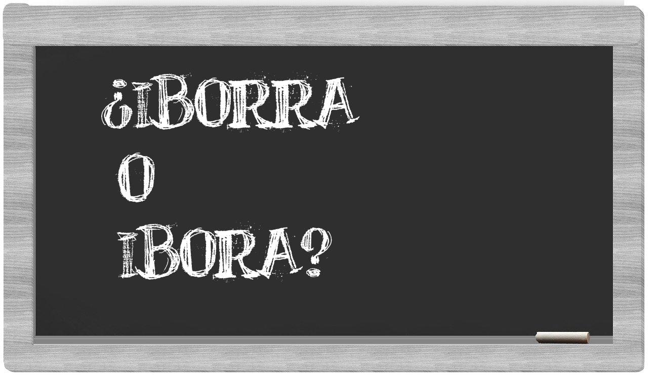 Cuando se presenta la distinción entre iborra y ibora, no hay lugar para la incertidumbre, puesto que únicamente iborra es la forma adecuada. Por otro lado, ibora no se encuentra registrada en el Diccionario de la Real Academia Española.