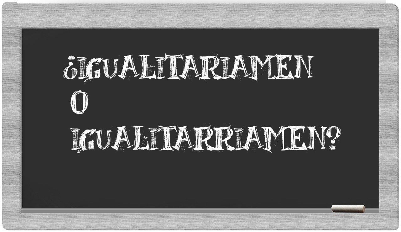 Cuando se trate de la elección entre igualitariamen y igualitarriamen, no deberías titubear, pues únicamente igualitariamen es la opción que figura correctamente en el Diccionario de la Real Academia Española, mientras que igualitarriamen carece de tal reconocimiento.