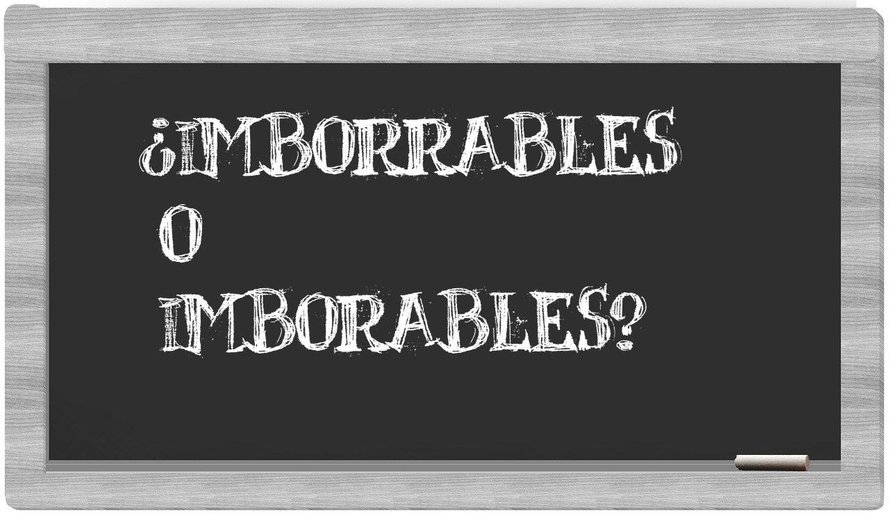 Cuando nos enfrentamos a la elección entre imborrables y imborables, la decisión debería ser sencilla, pues únicamente imborrables se encuentra registrada como correcta. La forma imborables no está contemplada en el Diccionario de la Real Academia Española.