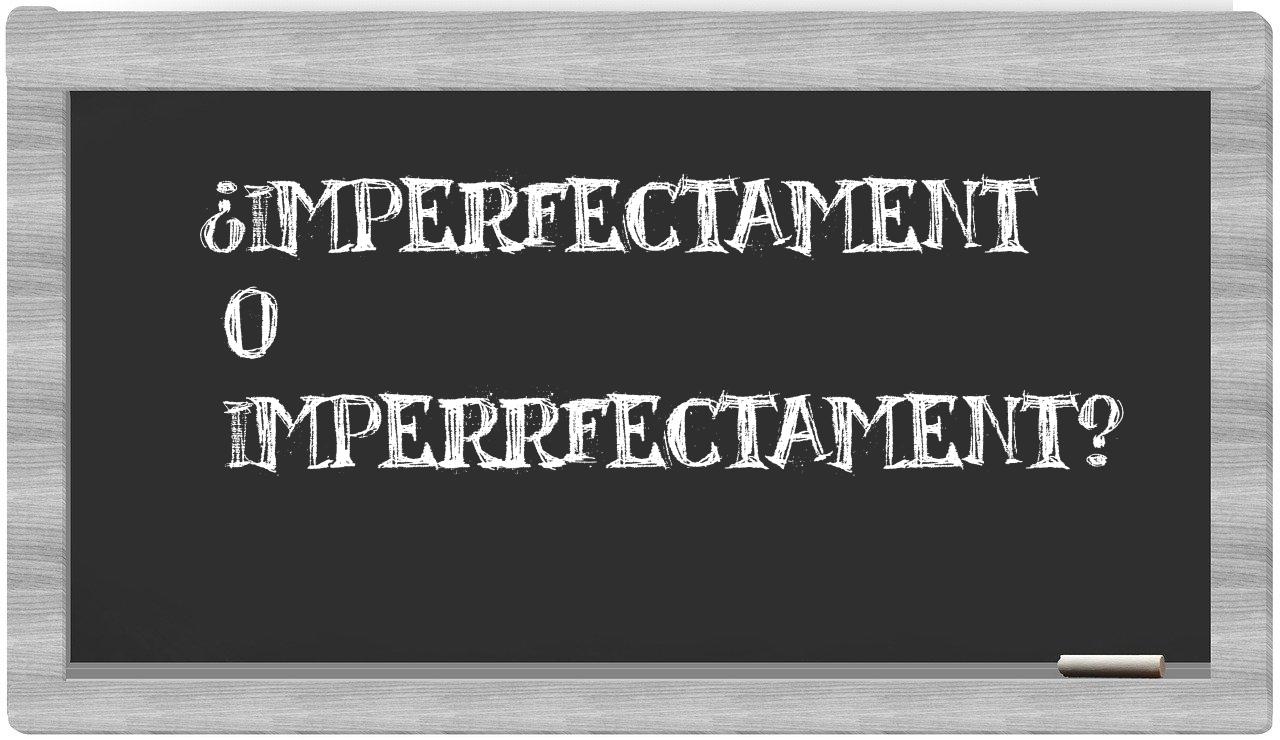 Cuando te enfrentes al dilema entre imperfectament y imperrfectament, es fundamental que no titubees, puesto que únicamente imperfectament está correctamente formulada en el idioma; por otro lado, imperrfectament no se encuentra registrada en el Diccionario de la Real Academia Española.