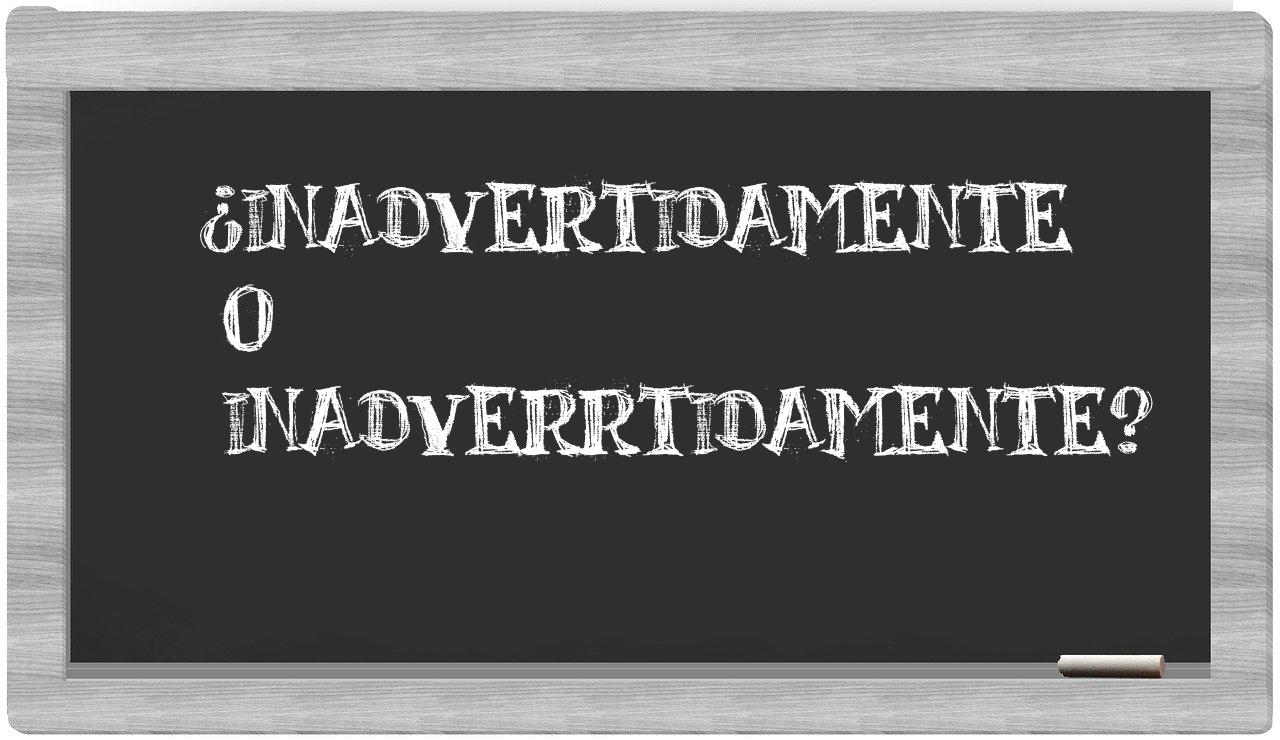 Respecto a la comparación entre inadvertidamente y inadverrtidamente, no hay lugar para la incertidumbre, puesto que únicamente inadvertidamente se encuentra registrado de manera adecuada. Por otro lado, inadverrtidamente no figura en el Diccionario de la Real Academia Española.