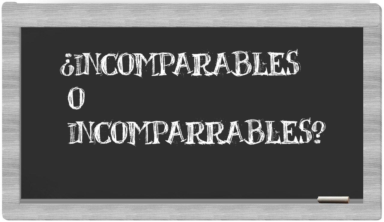 En la situación particular que vincula a incomparables y incomparrables, no deberías experimentar ninguna incertidumbre, porque únicamente incomparables se encuentra debidamente registrado y aceptado en el Diccionario de la Real Academia Española, mientras que incomparrables carece de reconocimiento en dicho compendio lingüístico.