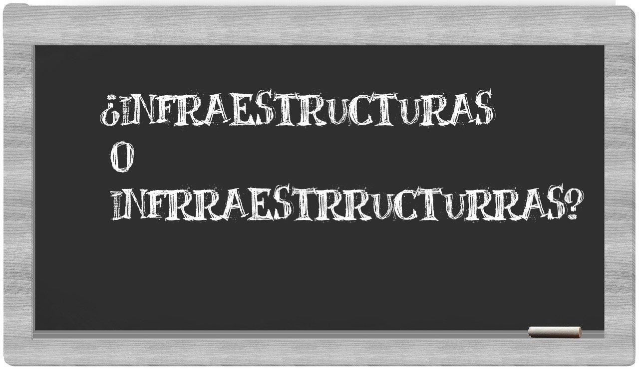 Cuando se presenta la distinción entre infraestructuras y infrraestrructurras, no debería haber lugar para la incertidumbre, puesto que únicamente infraestructuras es la forma adecuada. Por otro lado, infrraestrructurras no figura en el Diccionario de la Real Academia Española.