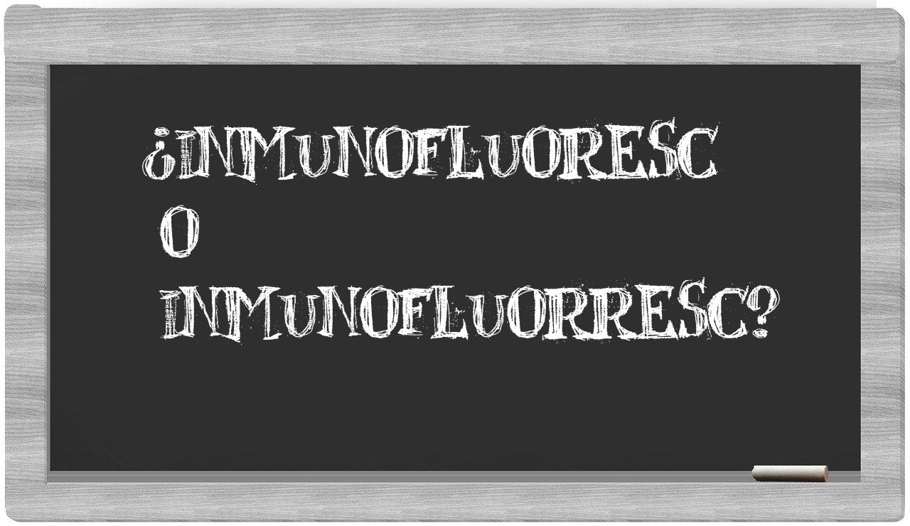 En la particularidad que se da entre los términos inmunofluoresc y inmunofluorresc, no cabe lugar a dudas, puesto que únicamente inmunofluoresc es la forma correcta según lo estipulado, mientras que inmunofluorresc no figura en el prestigioso Diccionario de la Real Academia Española.