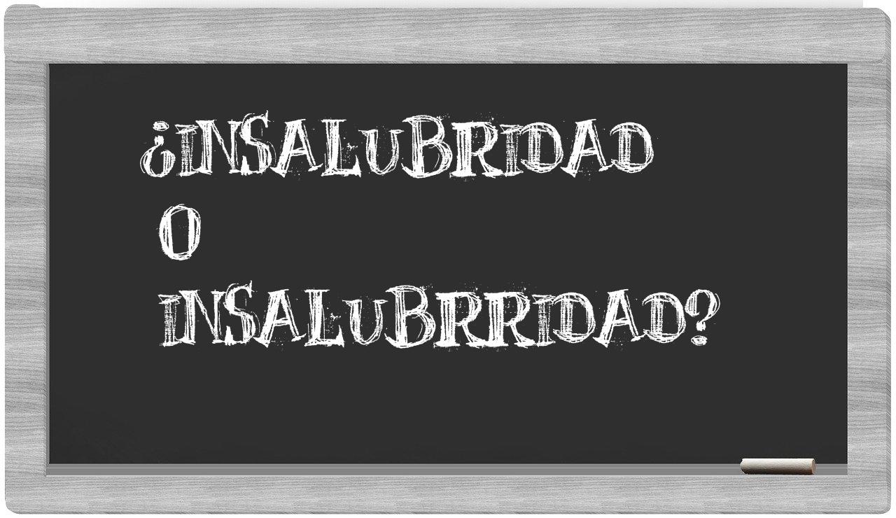 No deberías titubear en absoluto respecto a la distinción entre insalubridad y insalubrridad, puesto que solo insalubridad se encuentra debidamente registrada en el Diccionario de la Real Academia Española, mientras que insalubrridad carece de reconocimiento en su obra.