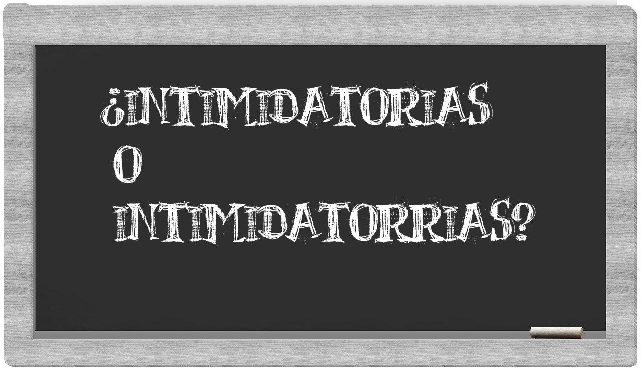 Respecto a la elección entre intimidatorias y intimidatorrias, es fundamental que no vaciles, puesto que únicamente intimidatorias es la opción que se encuentra correctamente validada. Por otra parte, intimidatorrias no se halla registrada en el Diccionario de la Real Academia Española.