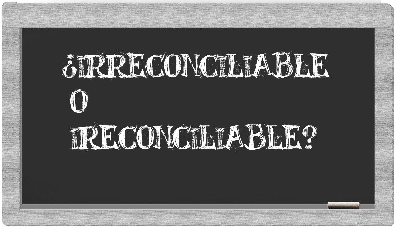 Cuando te enfrentes a la elección entre irreconciliable y ireconciliable, no permitas que la confusión te invada, dado que únicamente irreconciliable se encuentra correctamente redactada. Por otro lado, ireconciliable es una forma que no se encuentra registrada en el Diccionario de la Real Academia Española.