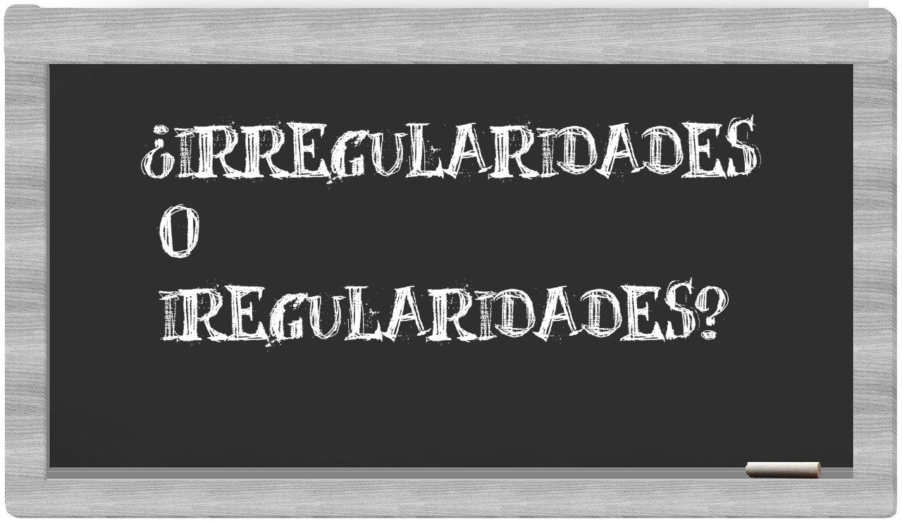 En la particular relación que existe entre los términos irregularidades y iregularidades, no deberías titubear en ningún momento, puesto que únicamente irregularidades es la opción que se encuentra debidamente registrada y validada. Por otro lado, iregularidades no figura en el repertorio del Diccionario de la Real Academia Española.