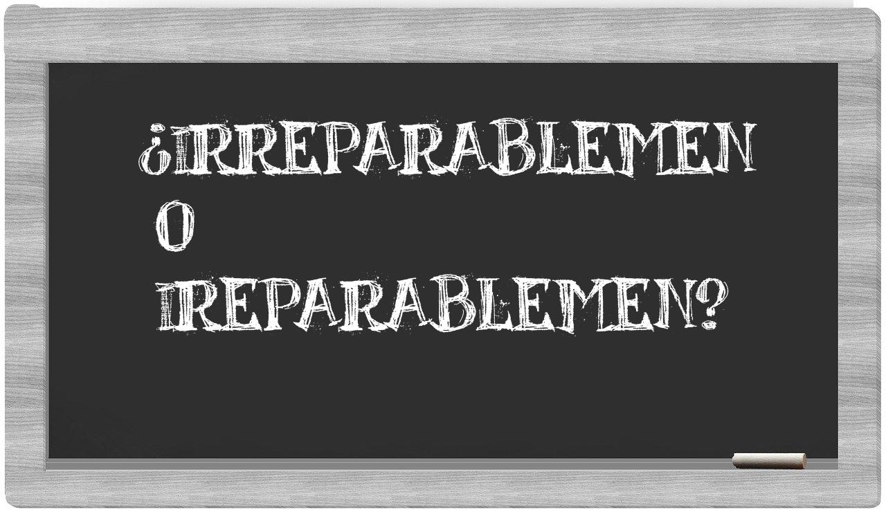 Cuando se trata de elegir entre irreparablemen y ireparablemen, la decisión es clara e indiscutible, puesto que únicamente irreparablemen cuenta con la validación adecuada en el Diccionario de la Real Academia Española, mientras que ireparablemen es un término que no encontrarás en sus páginas.