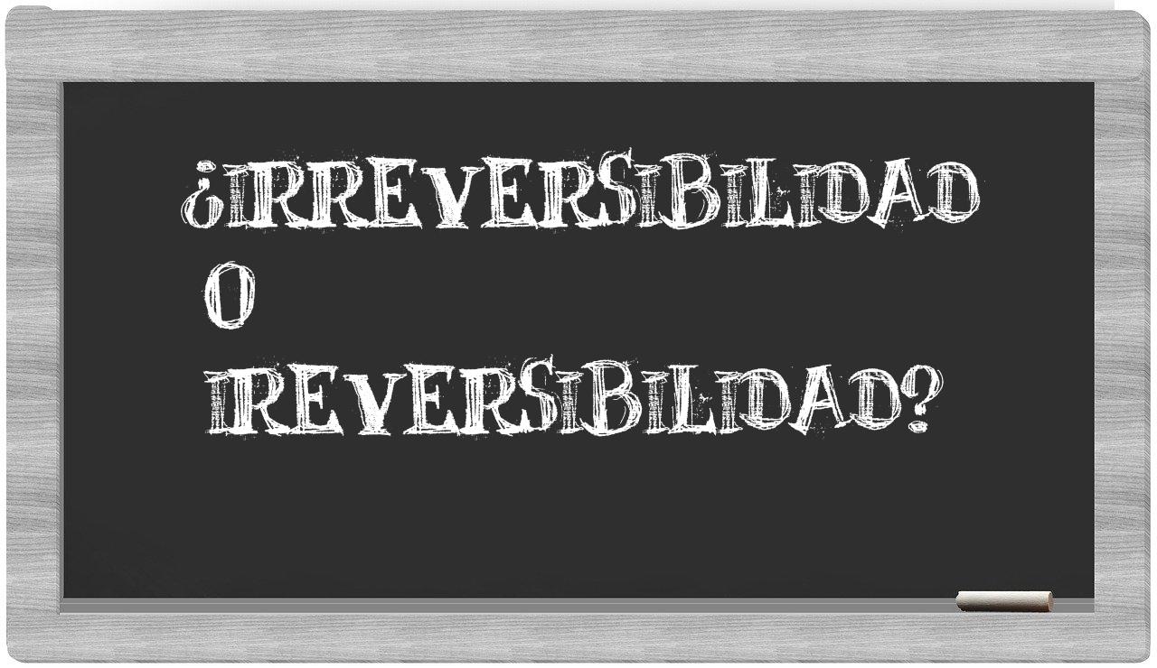 Cuando analices la relación entre irreversibilidad y ireversibilidad, es fundamental que no vaciles, puesto que únicamente irreversibilidad es la que se presenta de manera adecuada. Por el contrario, ireversibilidad no figura en el prestigioso Diccionario de la Real Academia Española.