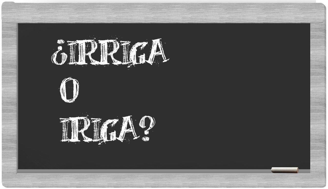 Cuando se trata de discernir entre irriga y iriga, no hay razón para vacilar, puesto que únicamente irriga es la opción que se ajusta a las normas del idioma. Es importante destacar que iriga no figura en el vocabulario reconocido por la Real Academia Española.