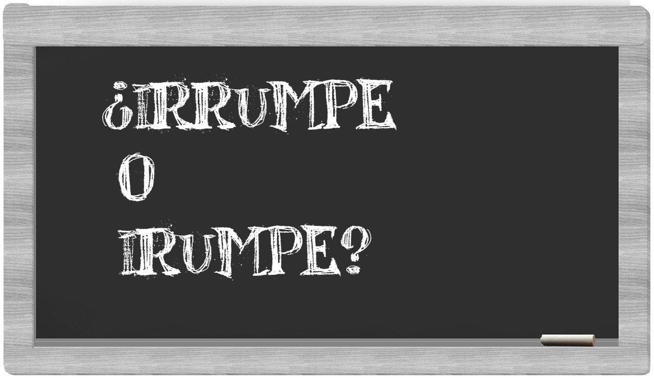 Cuando se trata de la elección entre irrumpe y irumpe, no debería haber espacio para la incertidumbre, puesto que únicamente irrumpe es la forma adecuada. Por otro lado, irumpe no se encuentra registrada en el Diccionario de la Real Academia Española.
