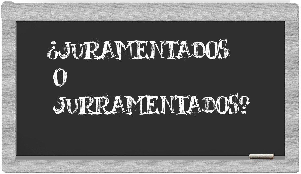 En la particular relación que existe entre los términos juramentados y jurramentados, no deberías titubear en ningún momento, puesto que únicamente juramentados es la opción que se encuentra debidamente registrada y validada. Por otro lado, jurramentados no figura en el repertorio del Diccionario de la Real Academia Española.