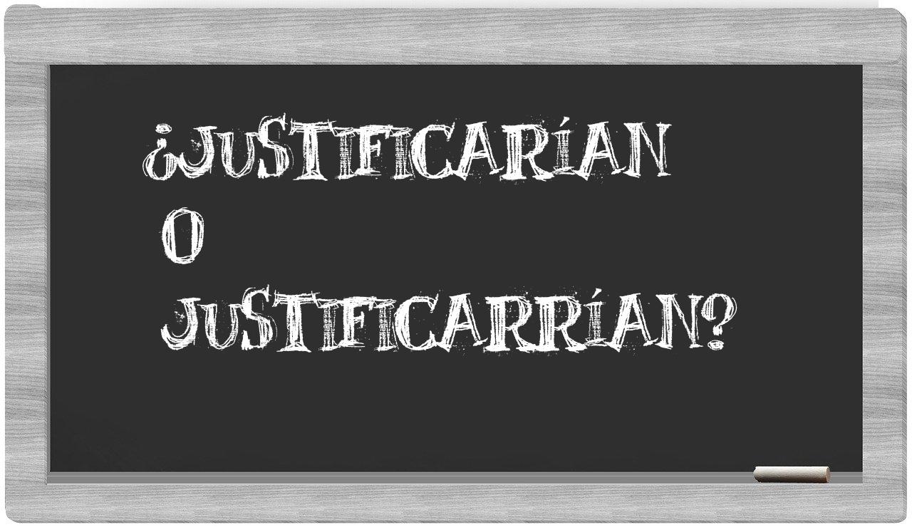 A la hora de elegir entre las vocablo justificarían y justificarrían, no hay lugar para la confusión, pues solo justificarían es la opción correcta, mientras que justificarrían carece de reconocimiento en el Diccionario de la Real Academia Española.