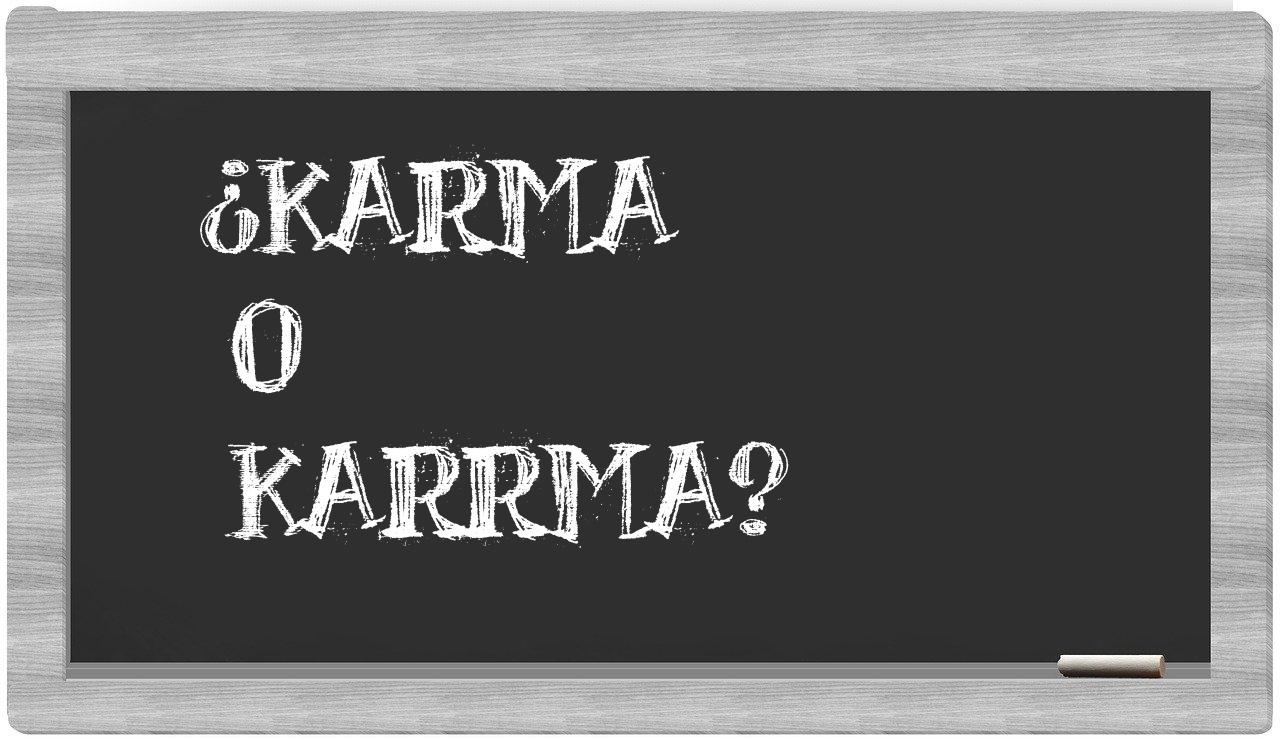 En la situación específica que se presenta entre los términos karma y karrma, nunca deberías titubear, dado que únicamente karma se encuentra correctamente redactada. Por otro lado, karrma no se encuentra registrada en el Diccionario de la Real Academia Española.