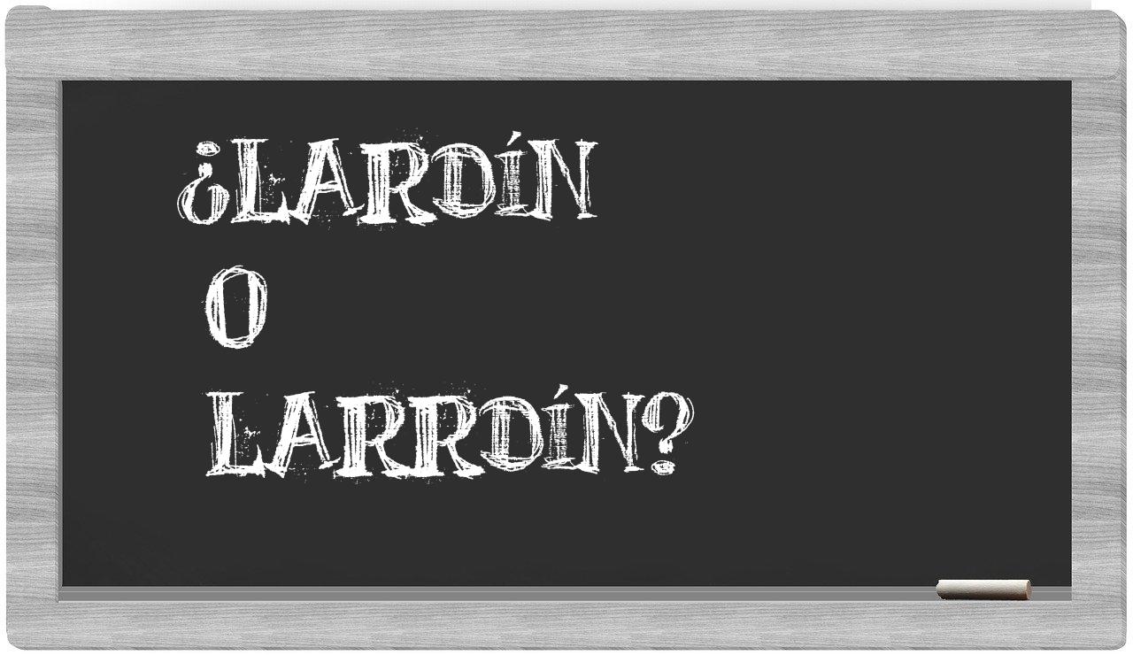 Cuando se trata de la relación entre lardín y larrdín, no debes titubear en tu elección, puesto que únicamente lardín se encuentra adecuadamente registrada. La forma larrdín no figura en el prestigioso Diccionario de la Real Academia Española.