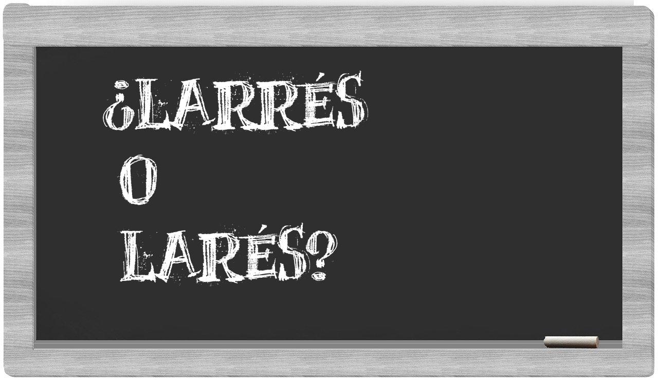 Cuando te encuentres en la situación de elegir entre larrés y larés, es fundamental que no vaciles, puesto que únicamente larrés es la opción adecuada. Ten en cuenta que larés no está reconocida por el Diccionario Oficial de la Real Academia Española.