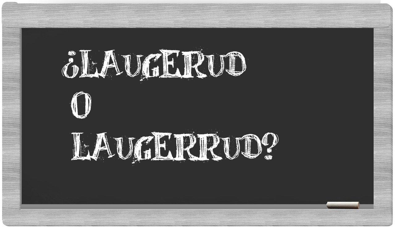 Cuando te encuentres frente a las palabras laugerud y laugerrud, no deberías titubear en tu elección, puesto que únicamente laugerud se encuentra debidamente registrada; en cambio, laugerrud no figura en el repertorio del Diccionario de la Real Academia Española.