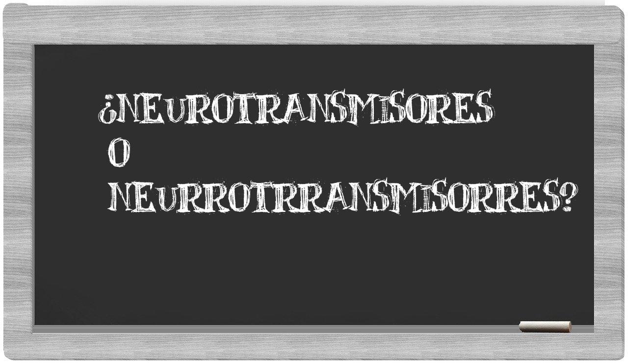 Respecto a la comparación entre neurotransmisores y neurrotrransmisorres, no hay lugar para la incertidumbre, puesto que únicamente neurotransmisores se encuentra registrado de manera adecuada. Por otro lado, neurrotrransmisorres no figura en el Diccionario de la Real Academia Española.