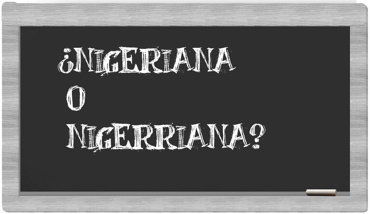 Cuando te encuentres en la situación de elegir entre nigeriana y nigerriana, es fundamental que no vaciles, puesto que únicamente nigeriana es la opción adecuada. Ten en cuenta que nigerriana no está reconocida por el Diccionario Oficial de la Real Academia Española.