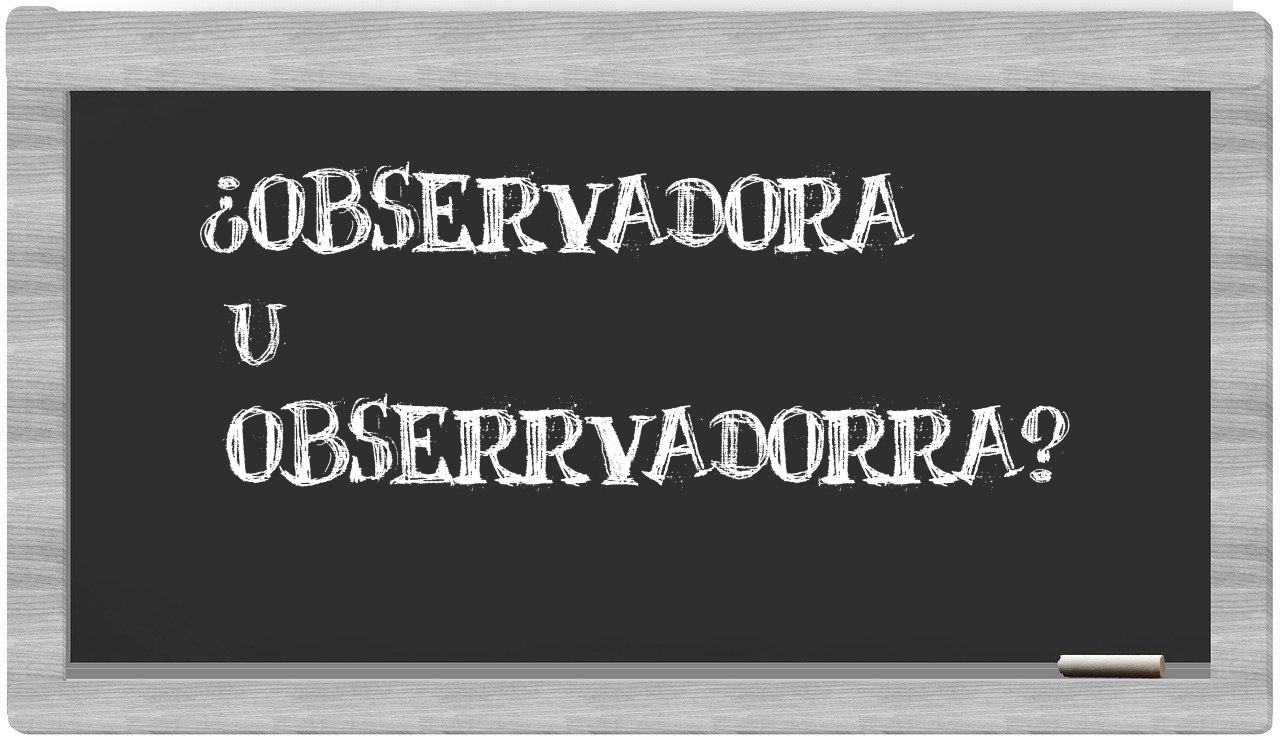 En la situación particular que involucra a observadora y obserrvadorra, nunca deberías titubear, puesto que solo observadora se encuentra debidamente documentada en el lenguaje culto, mientras que obserrvadorra carece de reconocimiento en el Diccionario de la Real Academia Española.