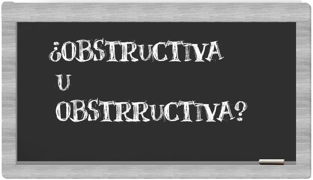 Cuando se trata de las palabras obstructiva y obstrructiva, no hay lugar para la confusión, ya que únicamente obstructiva está correctamente redactada. Por otro lado, obstrructiva no se encuentra registrada en el Diccionario de la Real Academia Española.