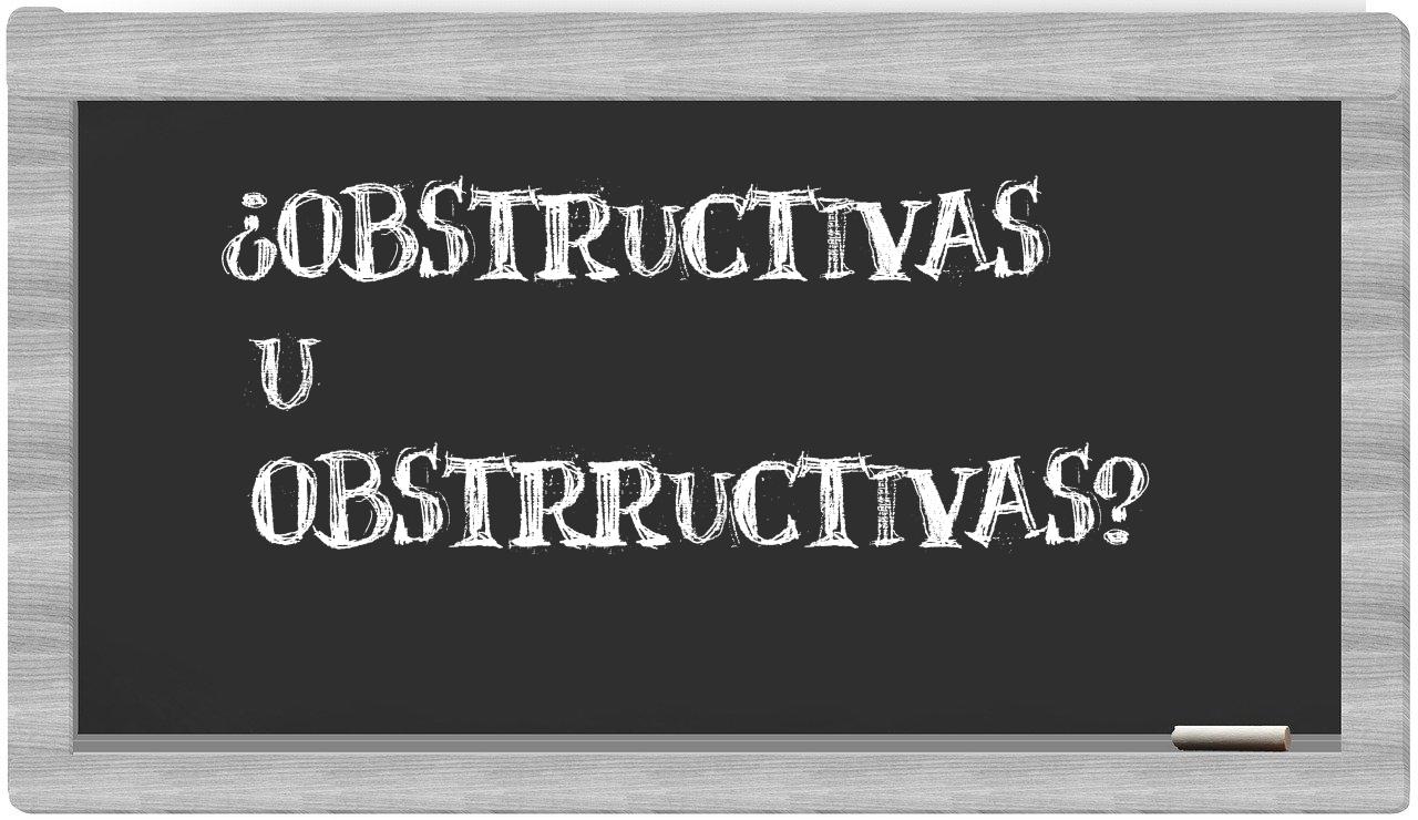 Cuando se trata de las términos obstructivas y obstrructivas, es fundamental no titubear, pues solo obstructivas se encuentra debidamente registrada y reconocida, mientras que obstrructivas no figura en el compendio autorizado de la Real Academia de la Lengua.