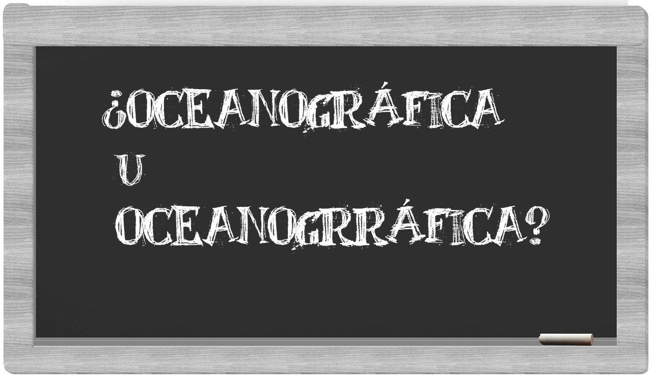 Cuando se trata de la distinción entre oceanográfica y oceanogrráfica, no hay lugar para la incertidumbre, puesto que únicamente oceanográfica se encuentra registrada adecuadamente. Por el contrario, oceanogrráfica no figura en el Diccionario de la Real Academia Española.