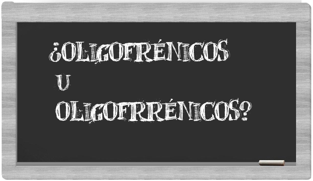 Cuando se trata de discernir entre oligofrénicos y oligofrrénicos, la elección debe ser clara y sin titubeos, puesto que únicamente oligofrénicos es la que cuenta con la validación ortográfica adecuada; en cambio, oligofrrénicos no se encuentra registrada en el Diccionario de la Real Academia Española.