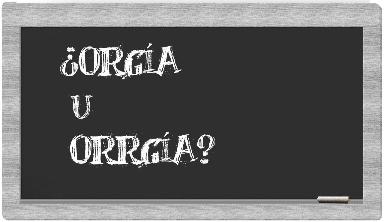 Cuando se presenta la distinción entre orgía y orrgía, la elección debería ser clara, puesto que únicamente orgía es la forma aceptada; en cambio, orrgía no se encuentra registrada en el Diccionario de la Real Academia Española.