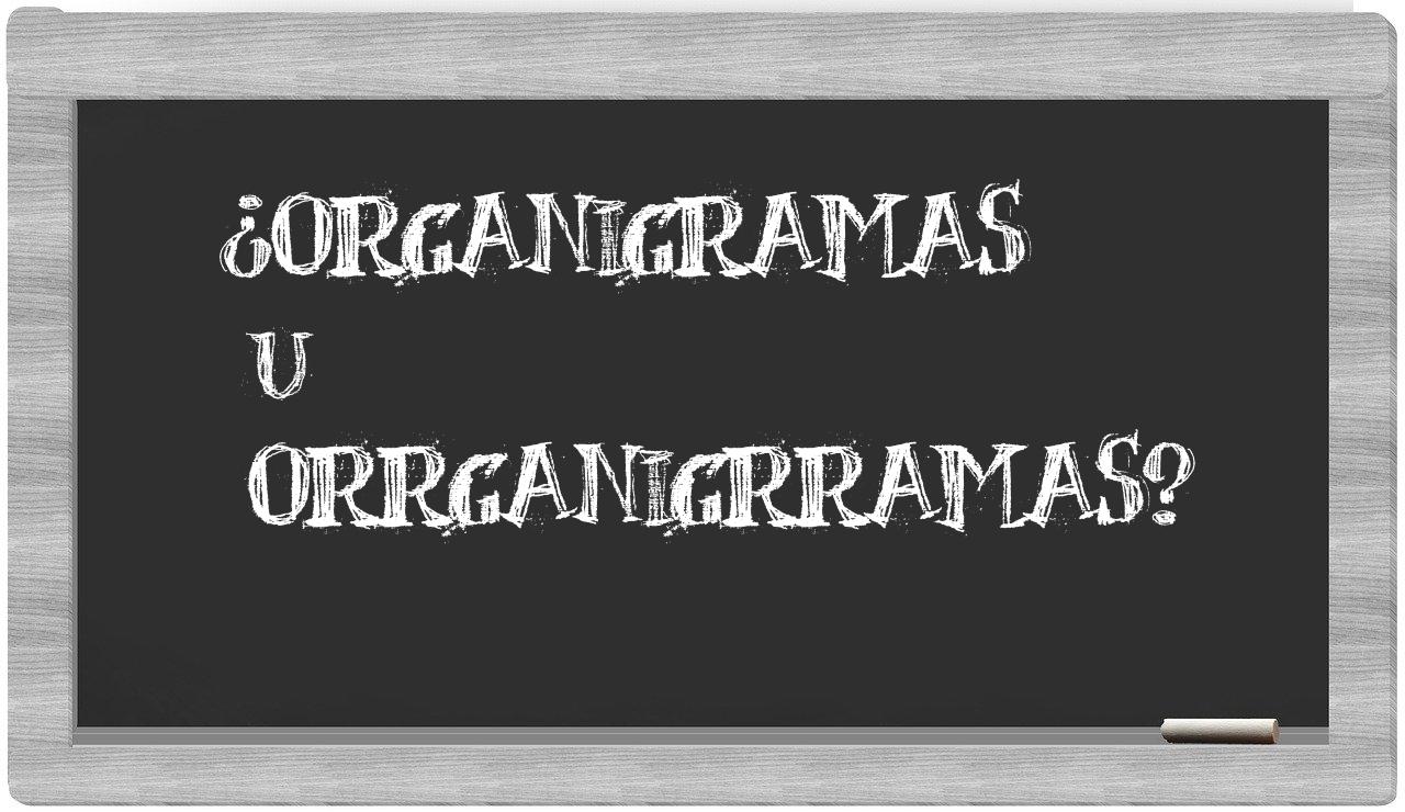 Cuando te enfrentes a la disyuntiva entre organigramas y orrganigrramas, ten certeza de que solo organigramas cuenta con la escritura adecuada, puesto que orrganigrramas no se encuentra registrada en el Diccionario de la Real Academia Española.