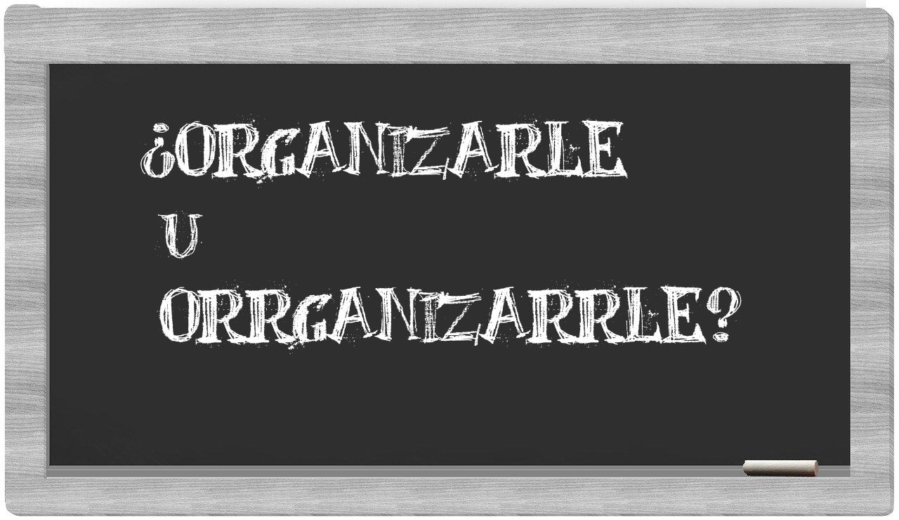 Cuando se trata de discernir entre organizarle y orrganizarrle, es fundamental que no vaciles, puesto que únicamente organizarle se encuentra registrado de manera adecuada. Por su parte, orrganizarrle no figura en el Diccionario de la Real Academia Española.
