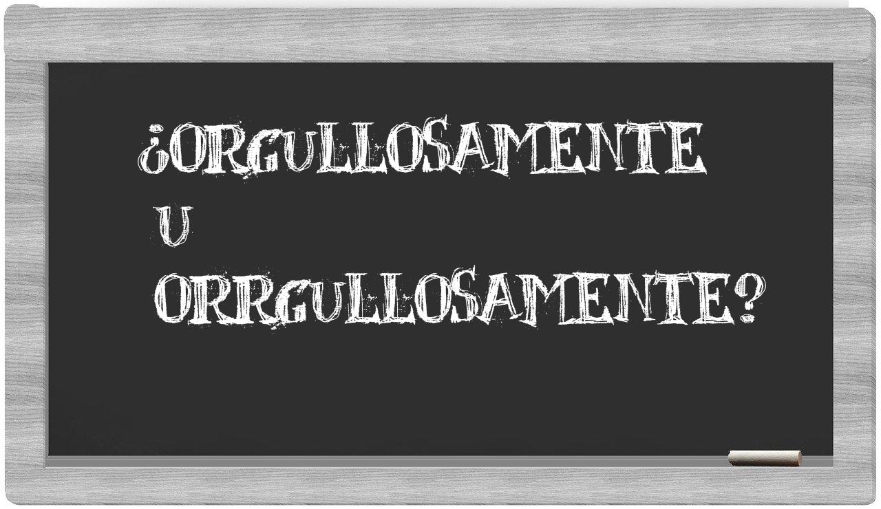 Cuando se presenta la distinción entre orgullosamente y orrgullosamente, no hay lugar para la incertidumbre, puesto que únicamente orgullosamente es la forma adecuada. Por otro lado, orrgullosamente no se encuentra registrada en el Diccionario de la Real Academia Española.