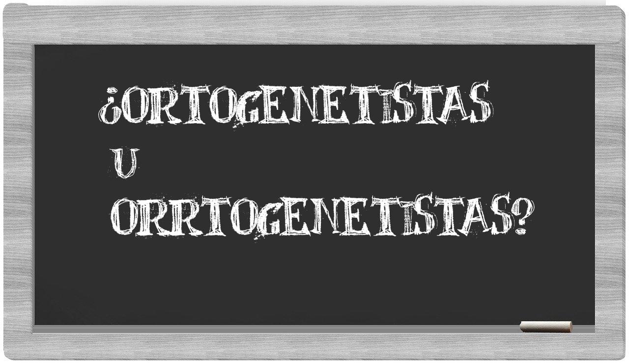 Cuando se presenta el dilema entre los términos ortogenetistas y orrtogenetistas, la elección es clara y sin ambigüedades, puesto que únicamente ortogenetistas es la forma que cuenta con el respaldo adecuado en el Diccionario de la Real Academia Española, mientras que orrtogenetistas carece de reconocimiento en el mismo.